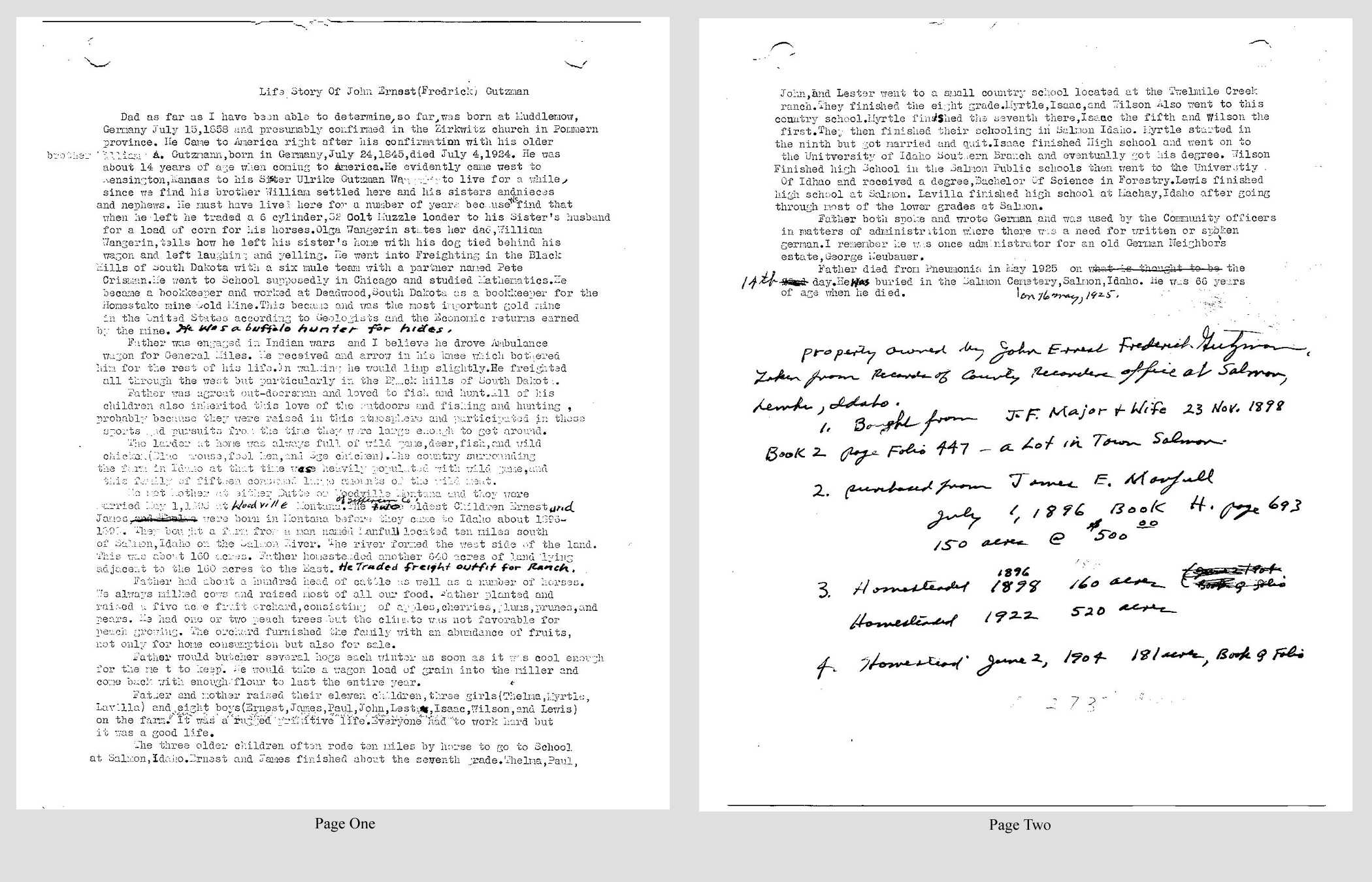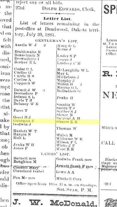 Newspaper aritcles from Deadwood place write of John Gutzman.